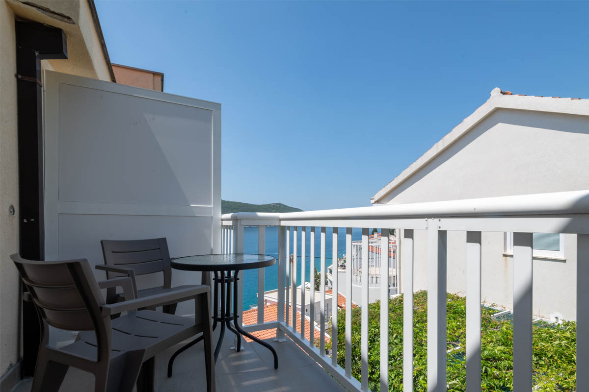 Apartman sadrži: mini kuhinju (osiguran kompletan pribor), TV, klimu (grijanje i hlađenje), balkon s pogledom na prekrasno plavetnilo zaljeva Neum-Klek, wireless internet, kupatilo s tuš-kabinom, te garažu ili parking za vaš automobil.