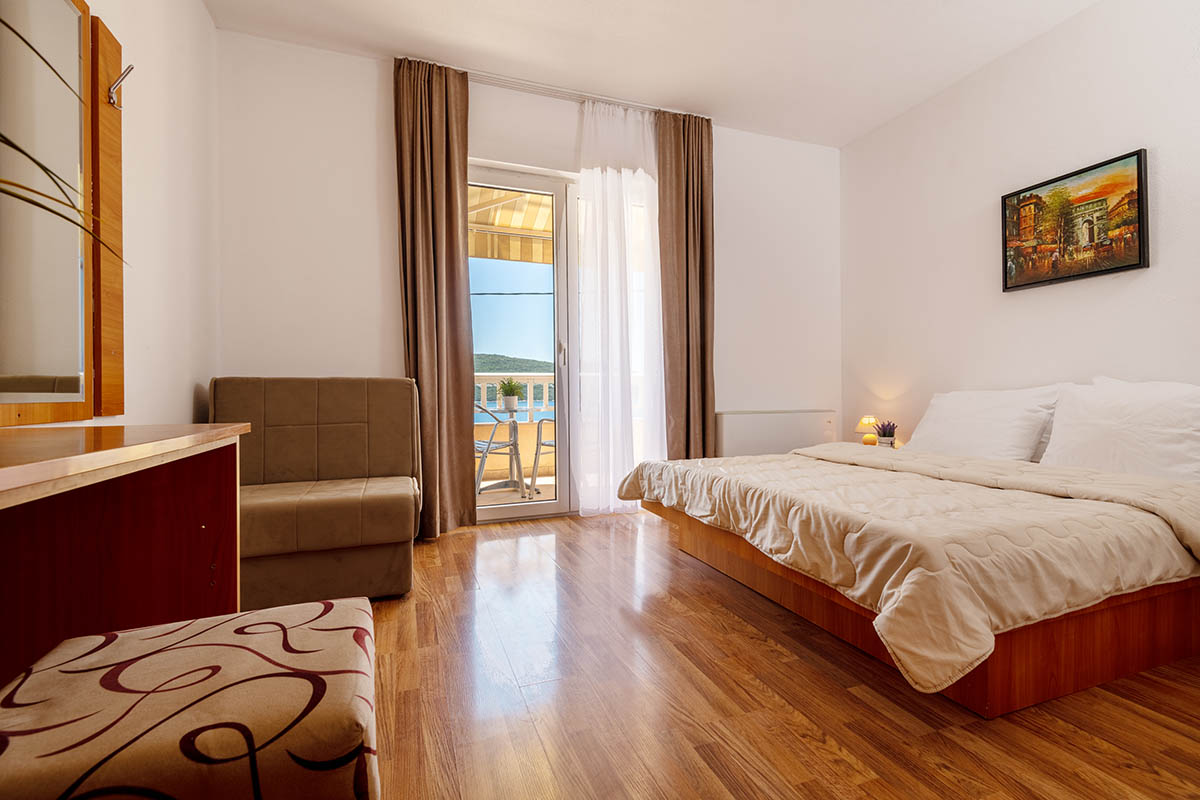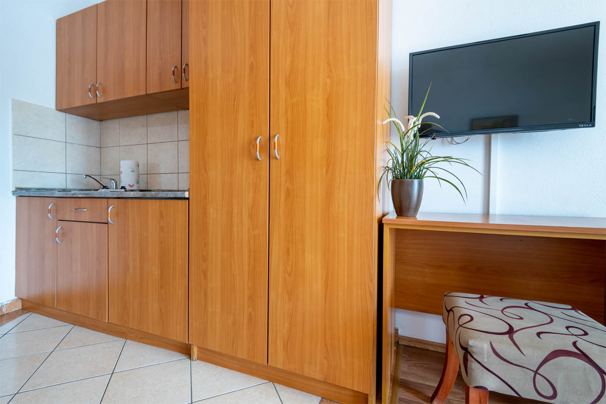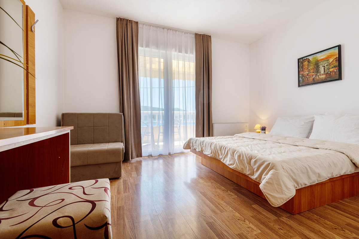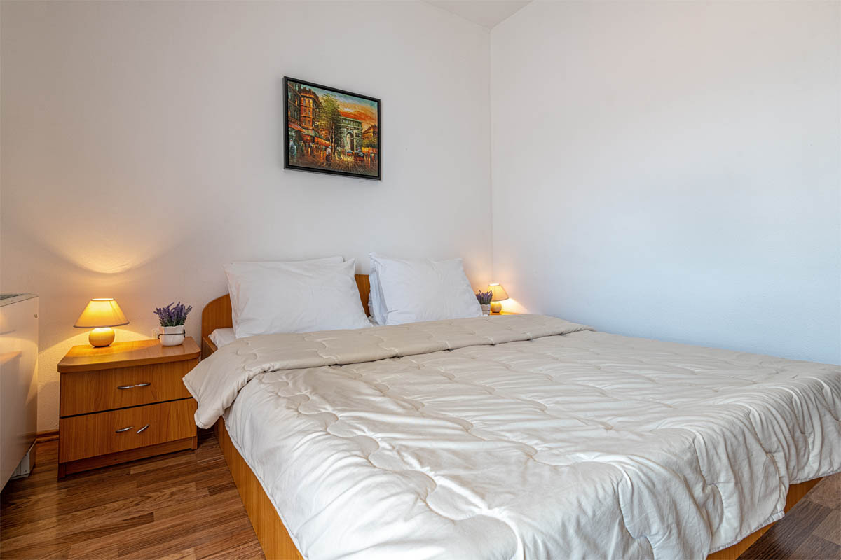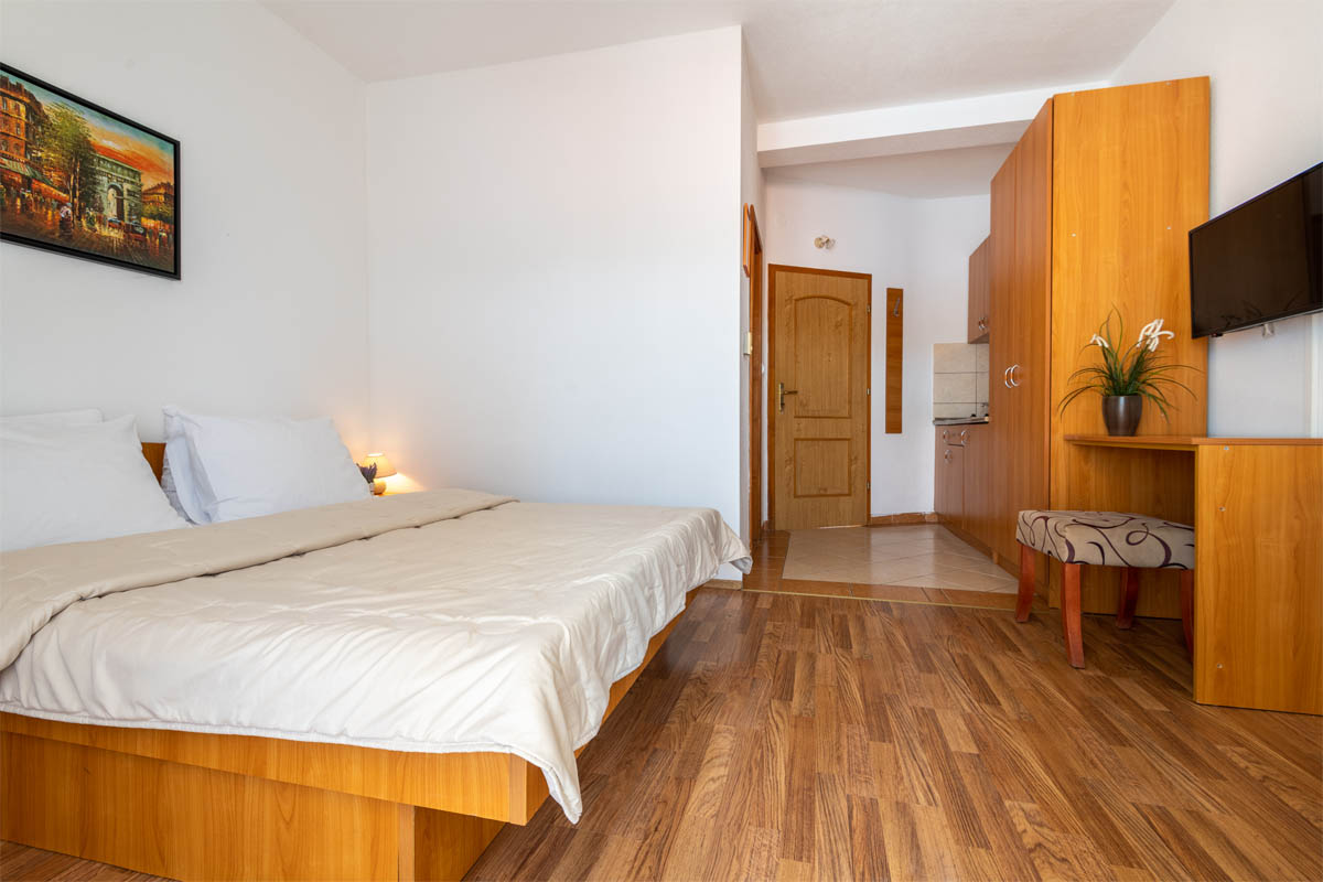 Apartman sadrži: mini kuhinju (osiguran kompletan pribor), TV, klimu (grijanje i hlađenje), balkon s pogledom na prekrasno plavetnilo zaljeva Neum-Klek, wireless internet, kupatilo s tuš-kabinom, te garažu ili parking za vaš automobil.